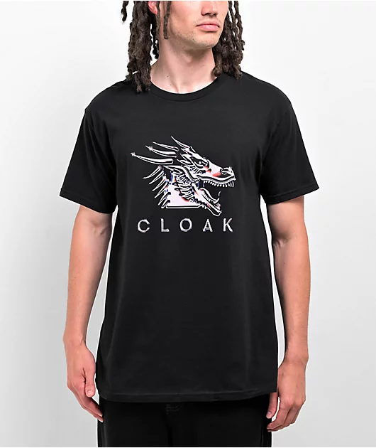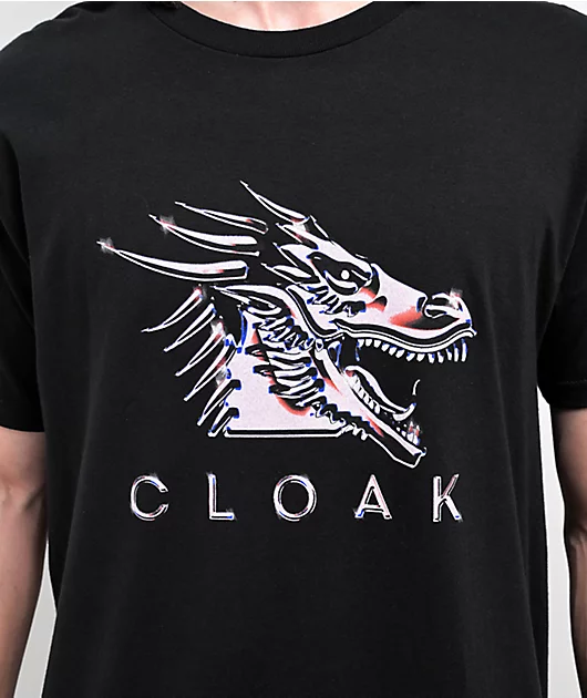 From CLOAK comes the Kas Slay t-shirt in a striking black colorway. The shirt features a red and blue dragon graphic on the chest, along a large dragon emblem on the back. Made from soft midweight cotton, the CLOAK t-shirt is complete with a ribbed neckli