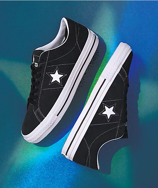 Hit the streets in subtle, vintage style with the One Star Pro black and white suede skate shoes from Converse. Built to brush off bumps and bruises, these sneakers come with sturdy suede uppers and vulcanized soles, with cushioned insoles offering up ple