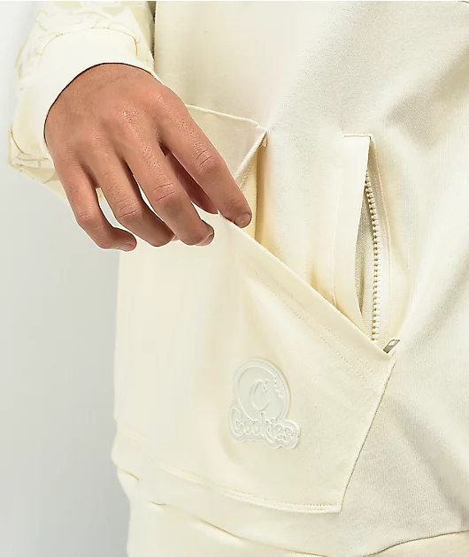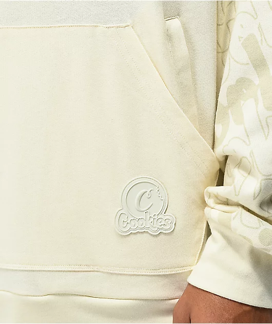 Take your hoodie rotation to the next level with the Gulfstream cream hoodie from Cookies. This hoodie has a cream-toned colorway, and features screen-printed repeating logo graphics across the upper half, while the lower half boasts a kangaroo pouch pock