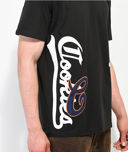 The Infamous jersey from Cookies comes in a clean black colorway, with colorful screen-printed branding along the left side and embroidered patch accents on the right. Taking inspiration from athletic attire, the midweight cotton blend allows for a breath