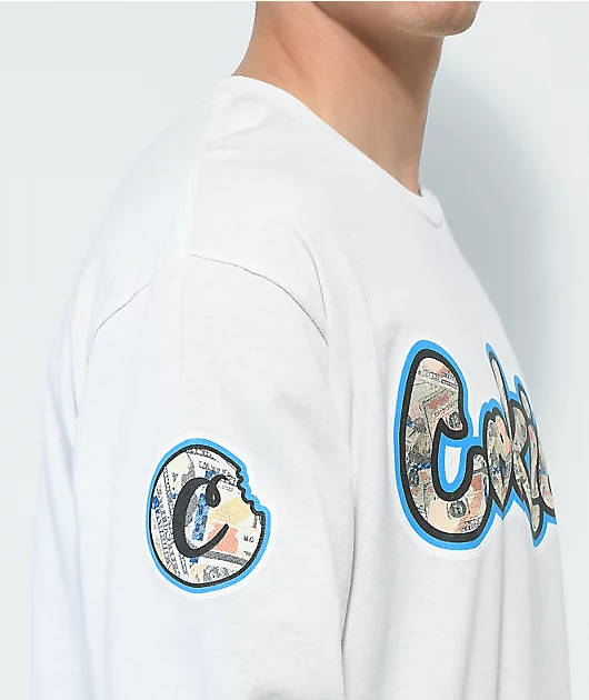 The OG Mint Money Cookies long sleeve t-shirt is made from premium, soft cotton, and comes in an easy-to-pair white colorway. This Cookies shirt has screen-printed, money inspired brand script across the chest, as well as a C logo on the right bicep, and