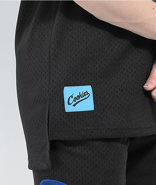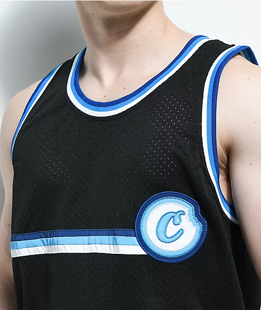 Made from durable, breathable polyester mesh, and mimicking all the classic basketball jerseys, the Puttin In Work Cookies jersey is sure to be a favorite. This Cookies basketball jersey comes in black with an embroidered C logo at the left chest and a la