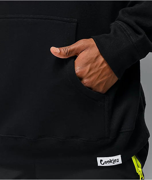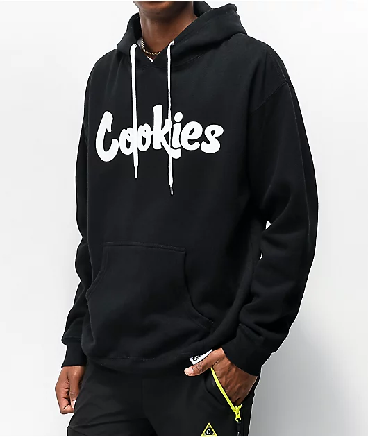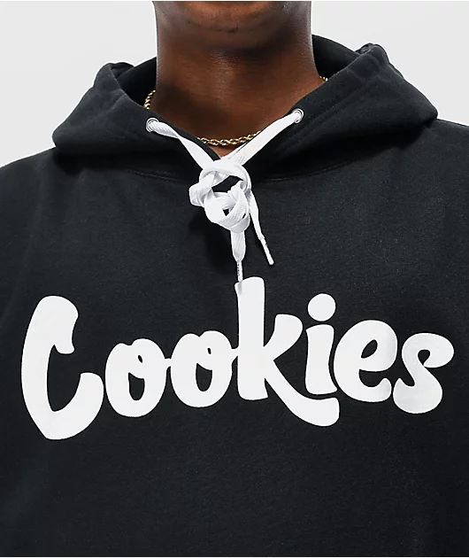Get a truly classic streetwear look thanks to the Cookies Thin Mint black hoodie. This all-black hoodie has a white Cookies logo script screen-printed across the center chest along with custom aglets on the shoelace drawstring hood.