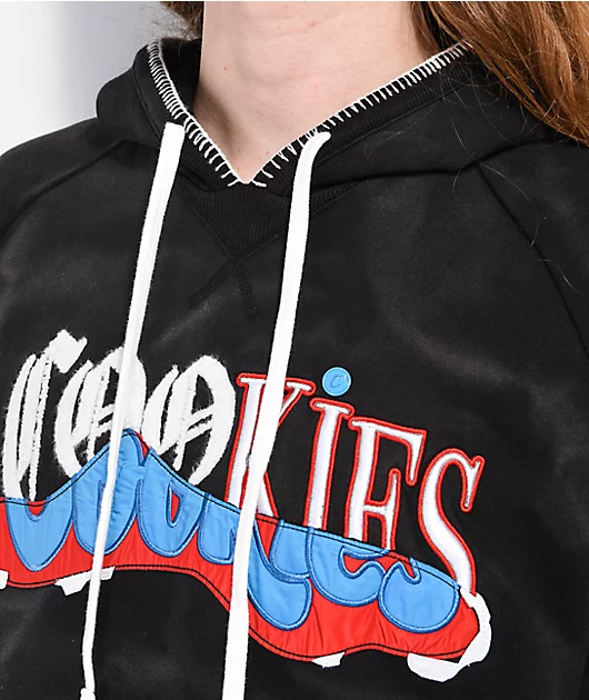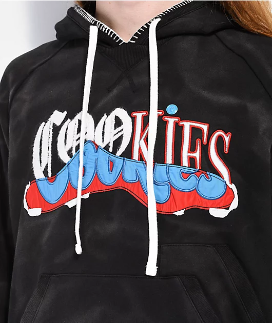 From Cookies, the Upper Echelon hoodie comes in a unique black wash, with a deconstructed motif throughout. Chenille, embroidery, and patchwork accents are complemented by contrast stitching along the hood while the kangaroo pouch pocket boasts an extra s