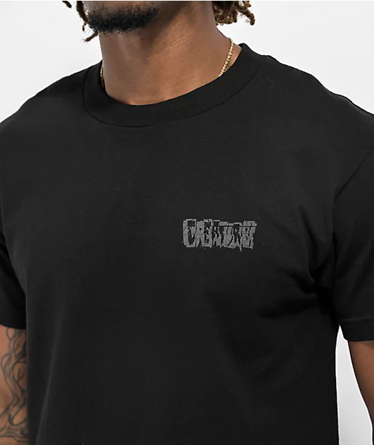 The Feedback t-shirt from Creature is made of 100% cotton and comes in a black colorway with a simple, grey logo on the left of chest and a bat logo in grey and neon green across the back.