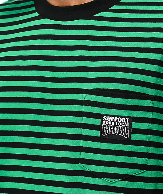 Creature Support Black & Green Striped T-Shirt