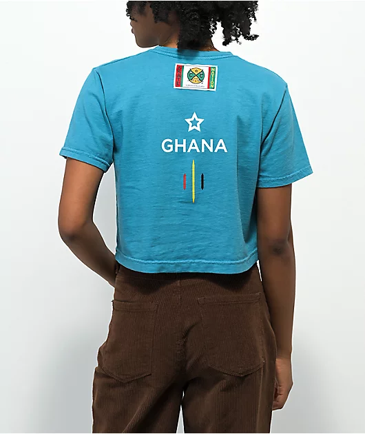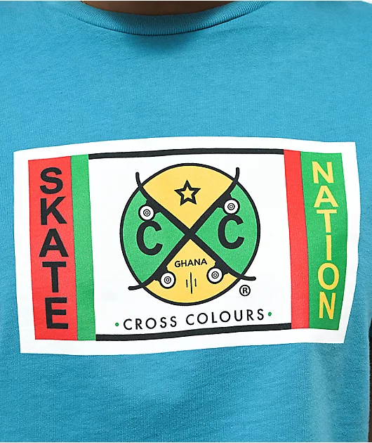 Cross Colours x Skate Nation Ghana Label Teal Crop T-Shirt