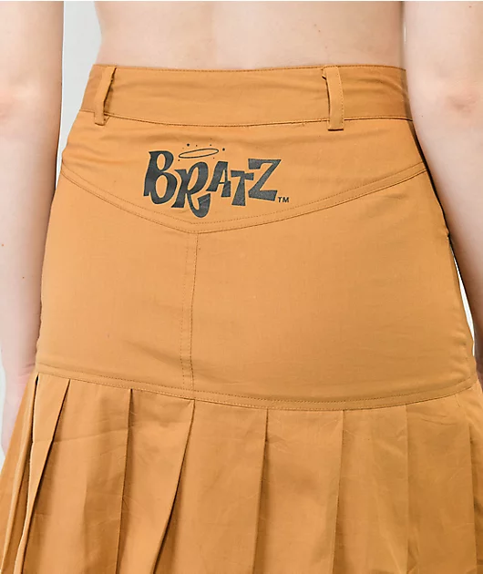 Daisy Street has teamed up with Bratz to create a line of clothing inspired by the dolls, featuring this pleated brown skirt. This mini skirt is fitted around the hips and has a pleated design on the bottom hemline for added texture. Featured in brown, th