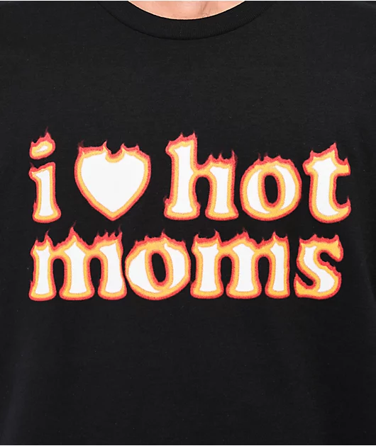 The I Heart Hot Moms Flame t-shirt from Danny Duncan comes in a black colorway and features screen-printed text across the chest in flame font that reads \”I Heart Hot Moms.\” The tee is constructed from a midweight yet breathable cotton with a classic fit.