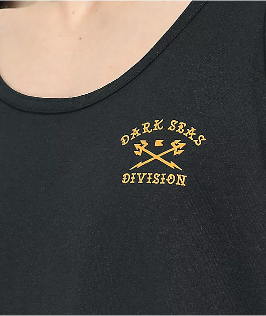 The Take Over Dark Seas tank top is fabricated from soft, breathable cotton, and has a non-itching tagless neckline. This tank top has a black colorway with a screen-printed logo script on the left of the chest, and a grim reaper holding a globe on the ba