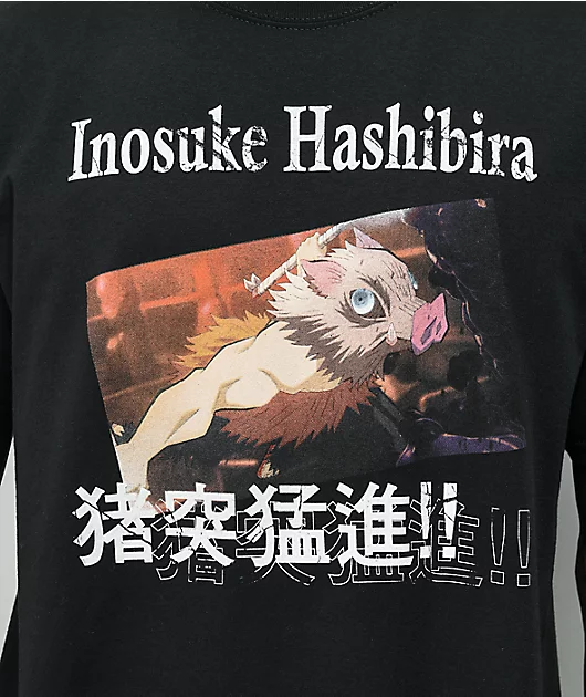 Show some love for your favorite anime with the Demon Slayer Hashibira black t-shirt! This tee comes in a short-sleeve silhouette and timeless black colorway. On the chest is a screen-printed graphic of a leaping Inosuke Hashibira on the front, with Japan