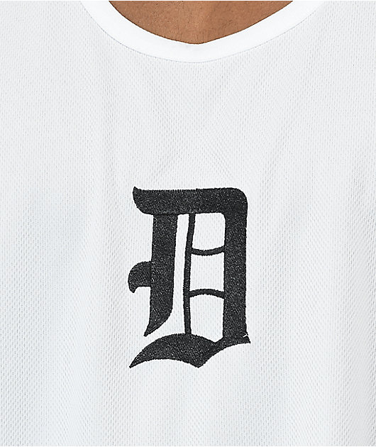 The Infinity DGK white tank top is made from lightweight, breathable cotton, and has mesh detailing on the side panels. Screen-printed DGK lettering sits on the center of the chest, and on the back is a skeleton hand holding a rose and text reading, \”Stay