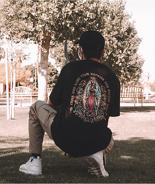 Add some timeless style to your tee game with the DGK Kids’ Guadalupe black t-shirt. This classic black tee features a graphic of Mary printed on the center chest, and surrounded by \”for those who come from nothing\” script for a dramatic look indeed.