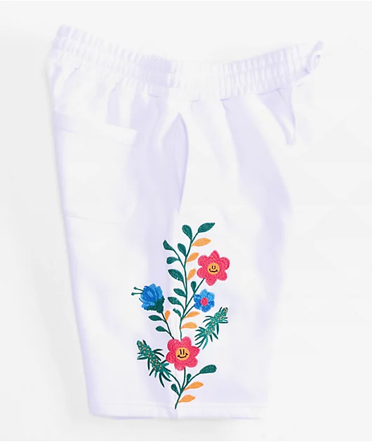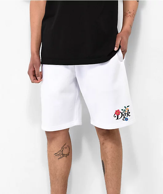 DGK introduces the extremely cozy Life sweat shorts in a solid white colorway. These shorts are constructed from a thick blend of cotton and polyester, and feature embroidered floral graphics near the leg opening.
