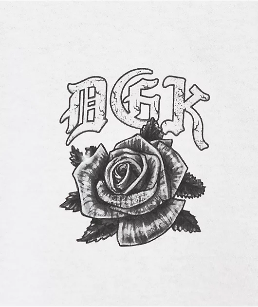 The Nuestra Vida tank top from DGK comes in a crisp white colorway, showing the brand name across the chest with a graphic of a rose in black and white. On the back of this summer top is another graphic of a women enveloped in smoke as she takes a drag fr