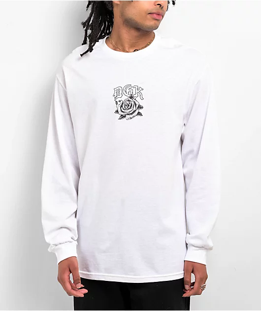 From DGK Skateboards comes the Nuestra long sleeve t-shirt in a white cotton construction. The midweight long sleeve tee features screen-printed logo script at the center chest, and a large graphic at