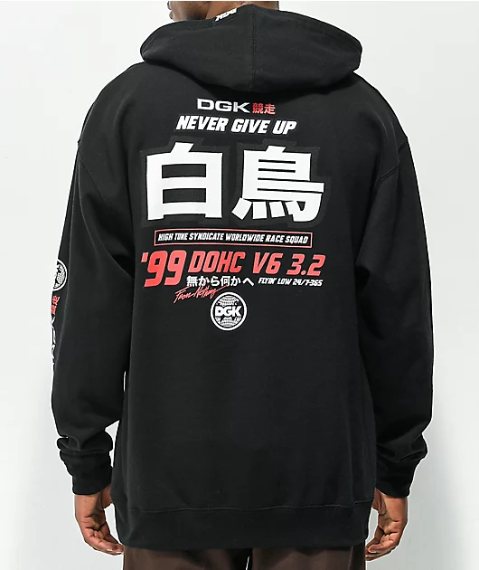 Satisfy your need for speed with DGK’s Pole Position black hoodie. Lined with a layer of fuzzy fleece and equipped with a drawstring-adjustable hood, this sweatshirt is sure to keep you cozy and warm, while screen-printed graphics of a souped-up race car