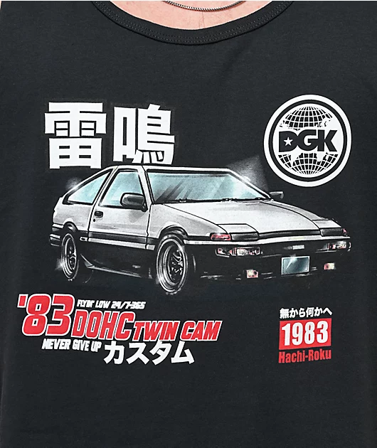 The Tuner tank top from DGK has a comfortable, relaxed fit and a lightweight, breathable cotton construction. It comes in an easily-pairable black colorway that’s outfitted with a screen-printed streetcar on the chest, and the car’s specifications on the