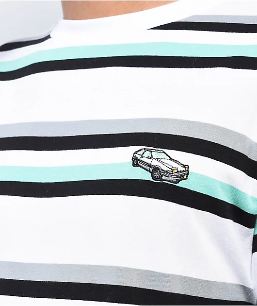 The Tuner DGK t-shirt is made of 100% cotton and comes in a white colorway with green and black stripes throughout and an embroidered graphic on the left of chest boasting a Japanese car.