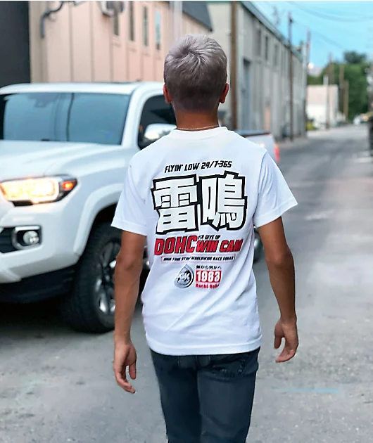 Add some high-speed style to any wardrobe with the Tuner white t-shirt from DGK! This white tee sports a ton of racing-inspired logo graphics across the back, with a DGK logo at the lower corner, giving a classic, iconic look to any ensemble.