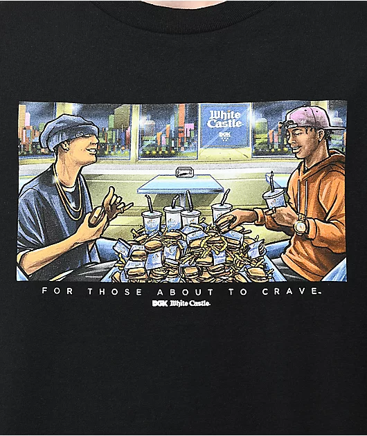 Proclaim your penchant for late-night cravings with DGK x White Castle’s Midnight black t-shirt. This tee comes in an all-black colorway, ensuring it’ll pair with anything in your wardrobe, while the cotton construction and short-sleeved silhouette keep i
