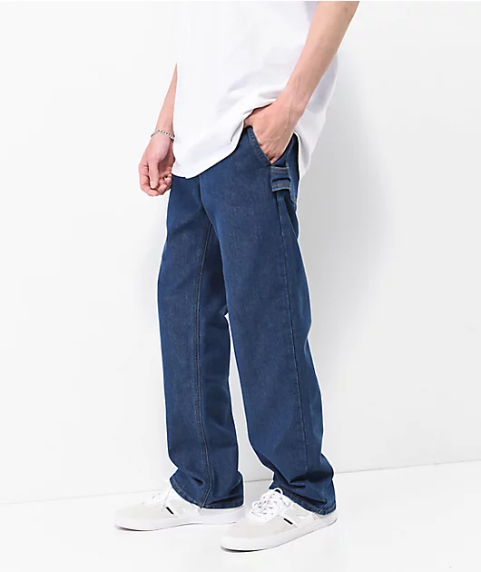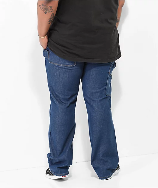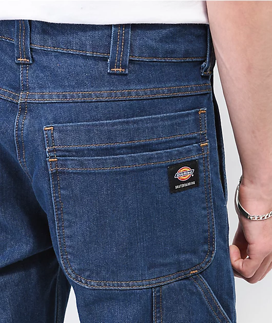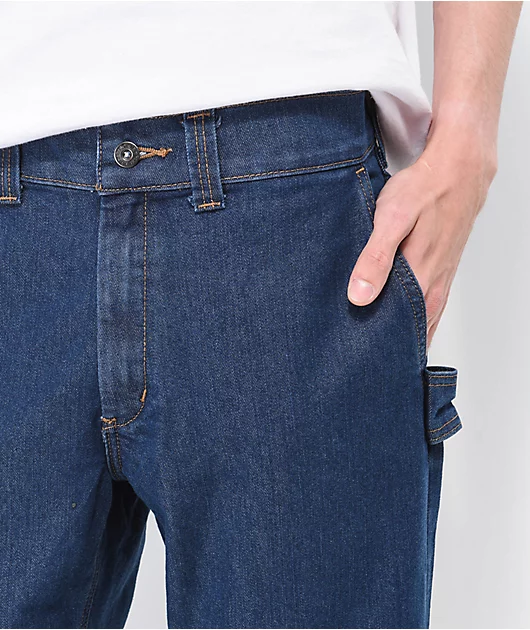 These Dickies utility jeans come in a dark blue denim construction with a classic five-pocket construction and two additional pockets on the right leg while the left boasts a hammer loop. Adorning these regular fit jeans is a brand patch woven onto the ba