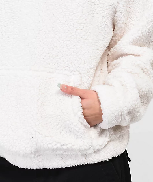 The Beckler Tech Fleece hoodie from Dravus is made of a cotton-poly blend and comes in a white fleece construction with brown plaid patterning above the chest. For the utmost warmth and security, this hoodie has quarter zip closure and a drawstring-adjust