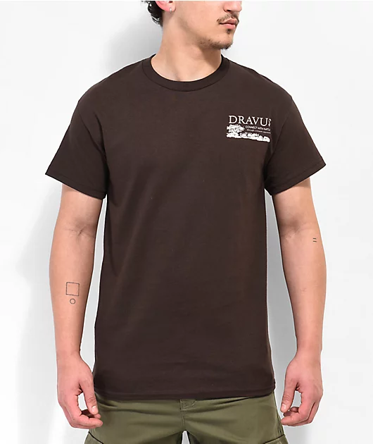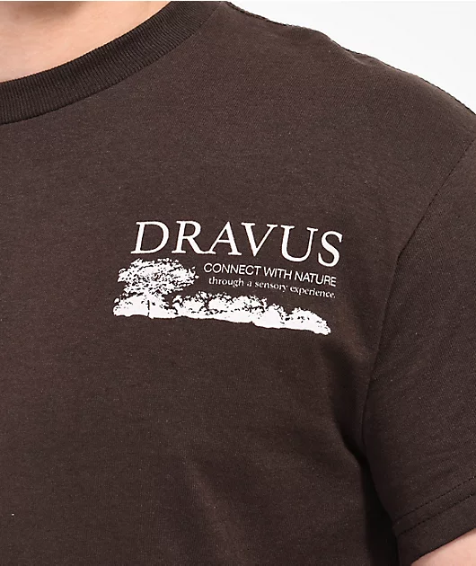 The Forest Bathing t-shirt from Dravus comes in a earthy brown colorway, with maximalist messaging focused on nature. \”Forest bathing | Connect with nature through a sensory experience\” is printed on the back, while meditative imagery can seen throughout.