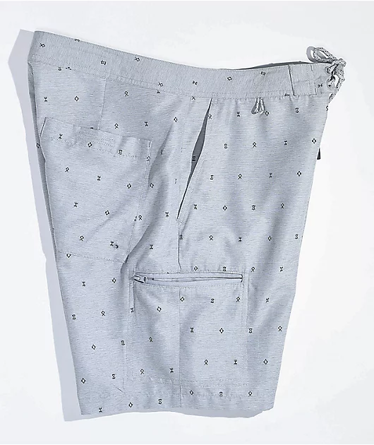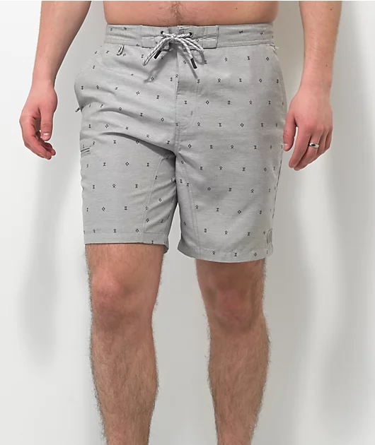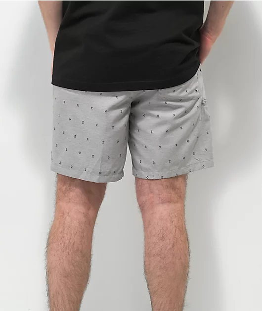 The Goff Dravus hybrid shorts are designed to be seamlessly worn as board shorts or as casual, everyday shorts. These Dravus shorts have a grey colorway with tiny, geometric all-over print. They are made from 100% polyester, which means these shorts are l