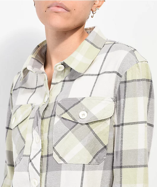 Coming in a soft green & tofu plaid construction, the Jairn flannel shirt from Dravus is an easy layering piece with boundless versatility. Made from a durable cotton blend, the traditional silhouette has a classic fold down collar a full button closure,