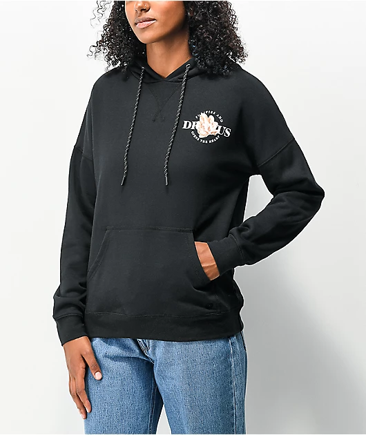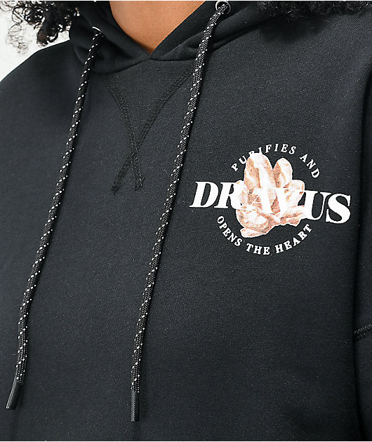The Kalina Minerals hoodie from Dravus comes in a black colorway with a brushed interior and a drawstring-adjustable hood to keep it comfortable. This pullover sweatshirt has the a brand logo on the left of the chest and screen-printed graphics of a serie