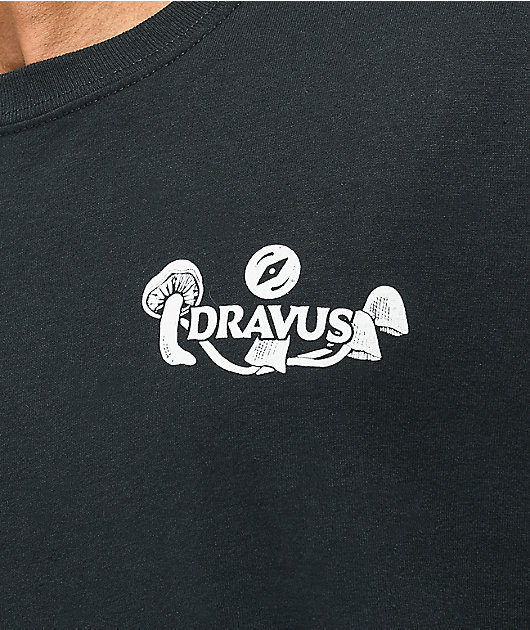 Pop a cap, or caps, into your style with the Dravus Mushroom Hunting black t-shirt. This tee features graphics of mushrooms on the chest and back in white for some trippy looks, while the all-black tee colorway offers some crisp vibes as well.