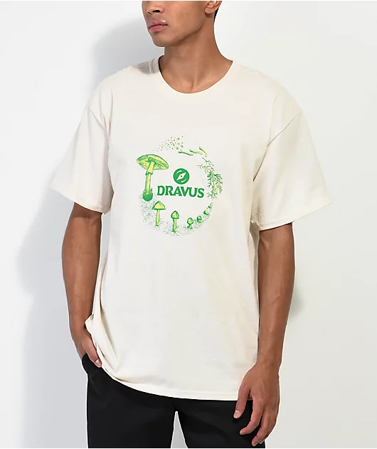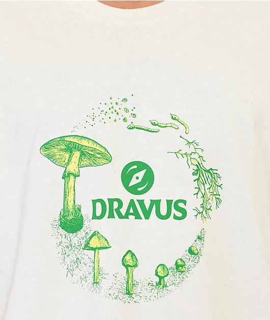Learn about the life of mushrooms with the Mycology Cycle t-shirt from Dravus, coming in an easy to pair sand colorway. Displayed on the chest is a graphic of a mushroom going through the full cycle, while on the back is the same graphic but larger; detai