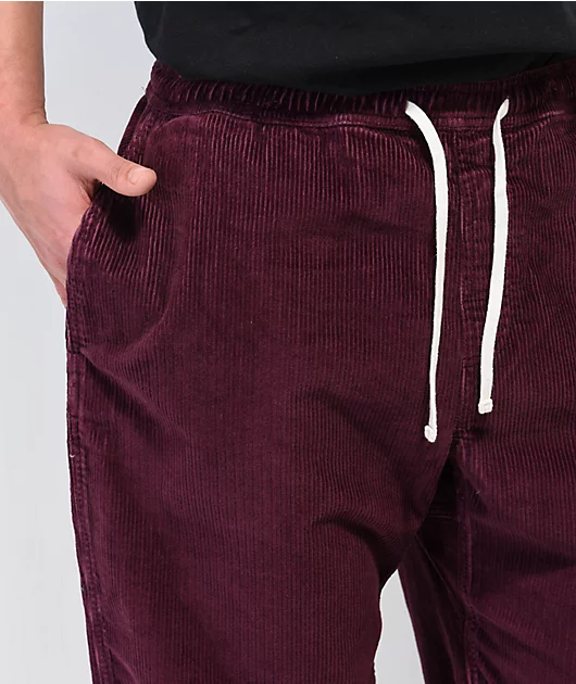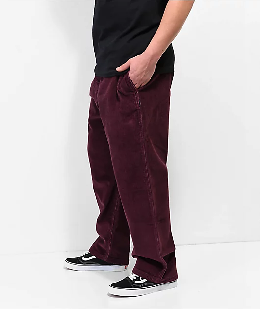 The Chillin corduroy skate pants come in a burgundy wine colorway, with a comfortable loose fit. Made from stretch cotton fabric, the corduroy pants have an elastic waistband promoting easy everyday wear. The versatile corduroy skate pants are finished wi
