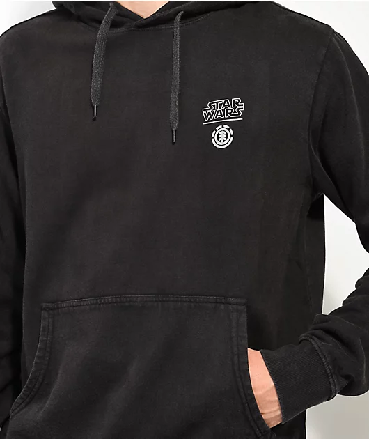 The force is strong with the washed black Yoda hoodie brought to you by an official collaboration between Element x Star Wars. Left of chest is the Element brand logo set below the well known Star Wars font, while on the back is a detailed image of the gr