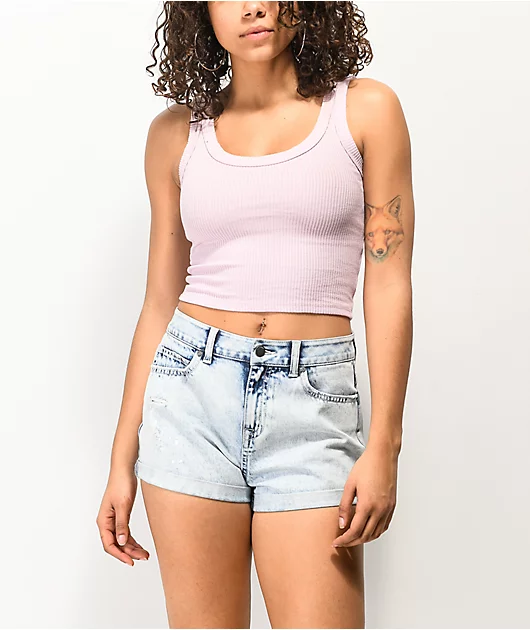 Empyre Adrian Roll Hem Light Wash Denim Shorts