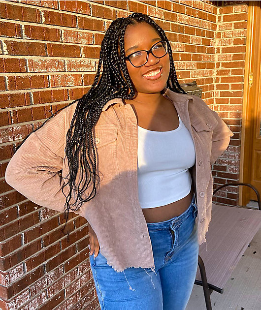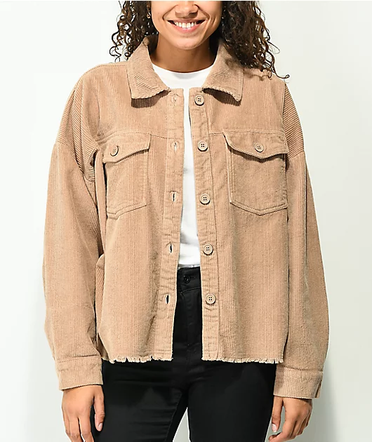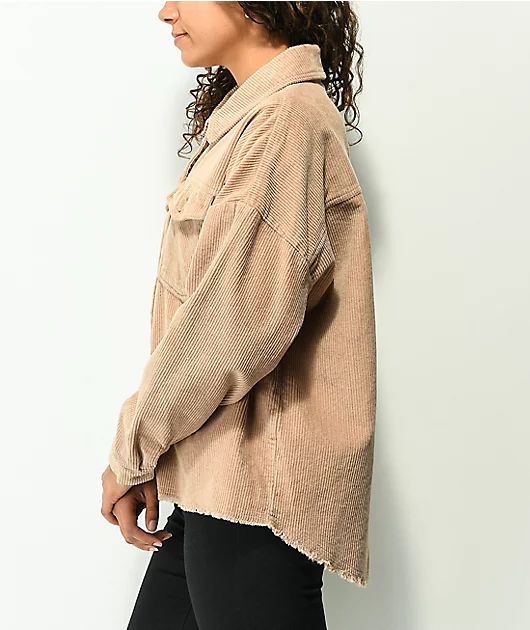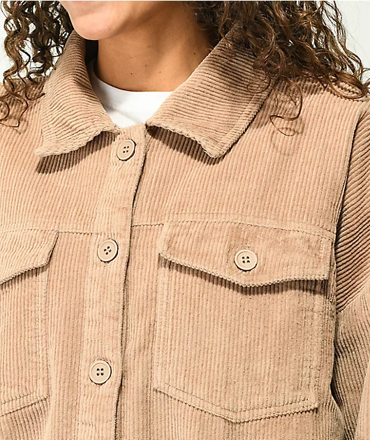 From wandering through the woods to strolling through the city, Empyre’s Aria tan corduroy shirt jacket will lend some cool-climate style to any closet. The mid-weight cotton construction makes crafting cozy layered looks a breeze, while the fold-down col