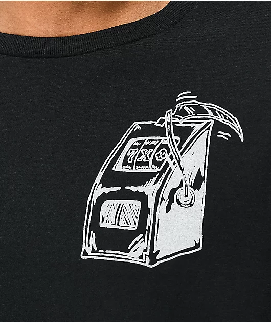Roll the dice on your next ‘fit with the Bad Luck Club black t-shirt from Empyre. This black tee has a 100% lightweight cotton construction, and features a graphic at the left chest with a broken slot machine, while a matching graphic is on the center of