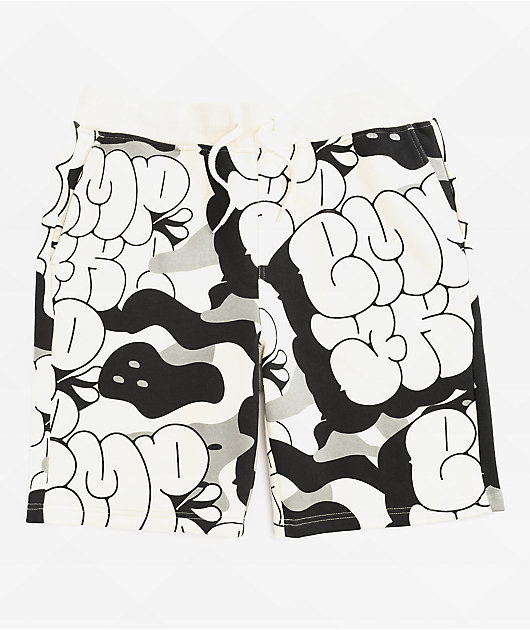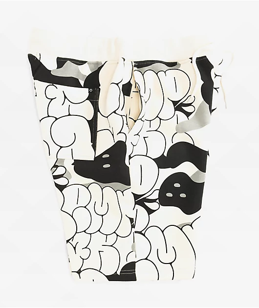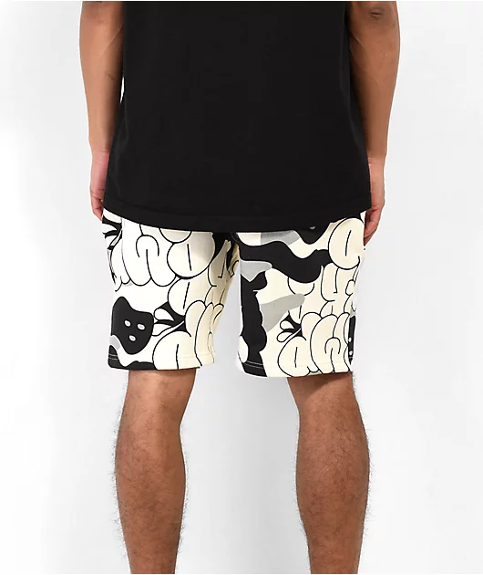 The Bubble Boy sweat shorts from Empyre come in a natural colorway with black bubble letters throughout spelling out the brand name. These stylish shorts are also highly comfortable with a drawstring-adjustable elastic waistband and dual slash pockets wit