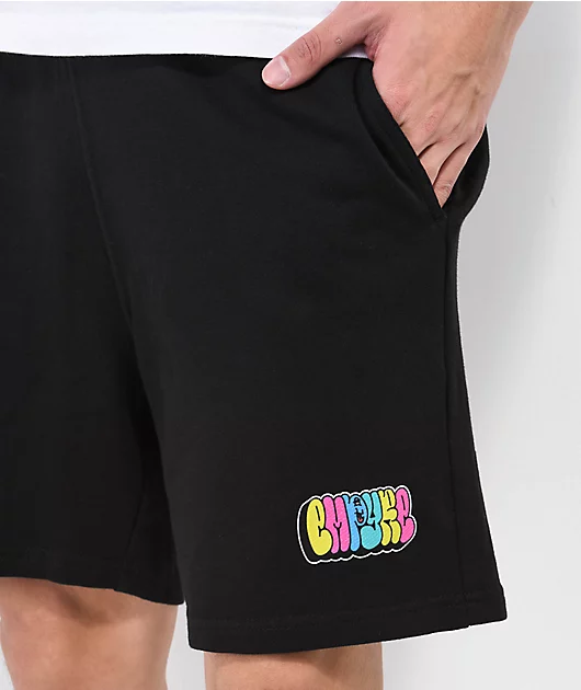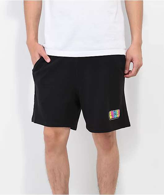 The Bubble letter sweat shorts from Empyre come in a black colorway, with screen-printed branding above the left leg opening. Made from soft 60% cotton, 40% polyester, the shorts are finished with a cozy brushed interior, and a ribbed drawstring adjustabl
