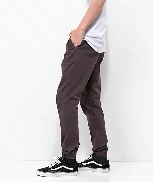 Empyre Creager Stretch Elastic Waist Brown Jogger Pants