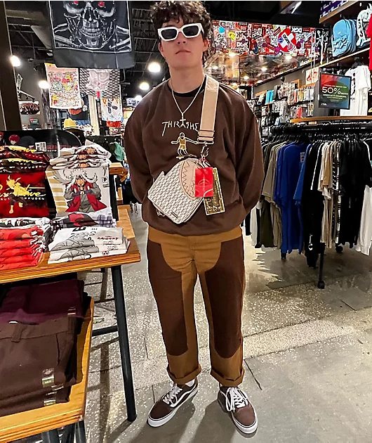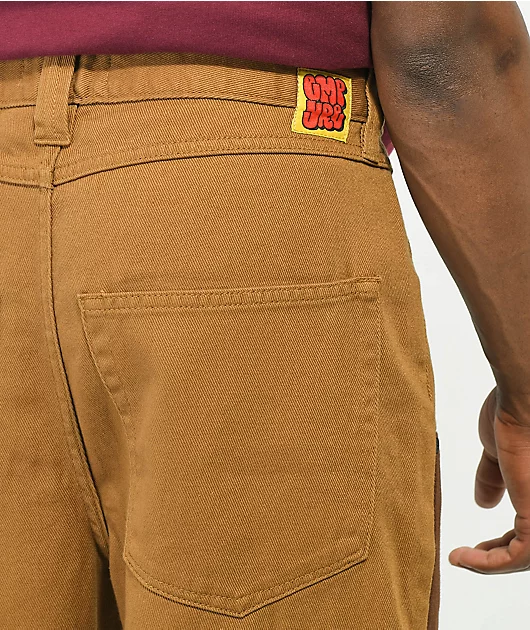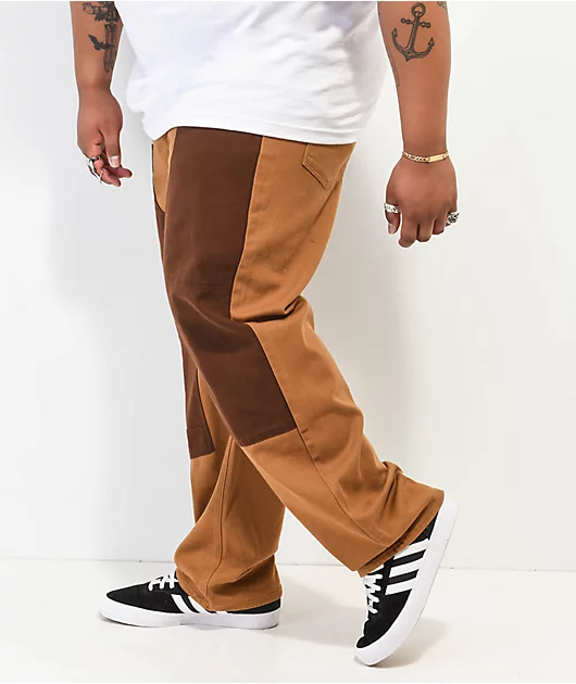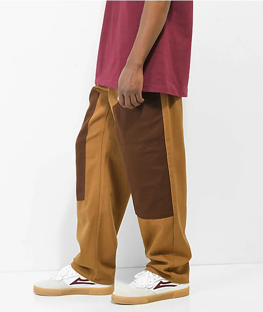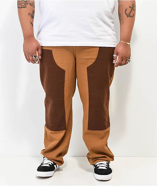 From Empyre comes the Double Knee skate jeans in a tobacco colorway. Featuring a double knee construction in a dark brown colorway, contrasting nicely with the light brown throughout, complete with a classic five pocket design; these loose pants are durab