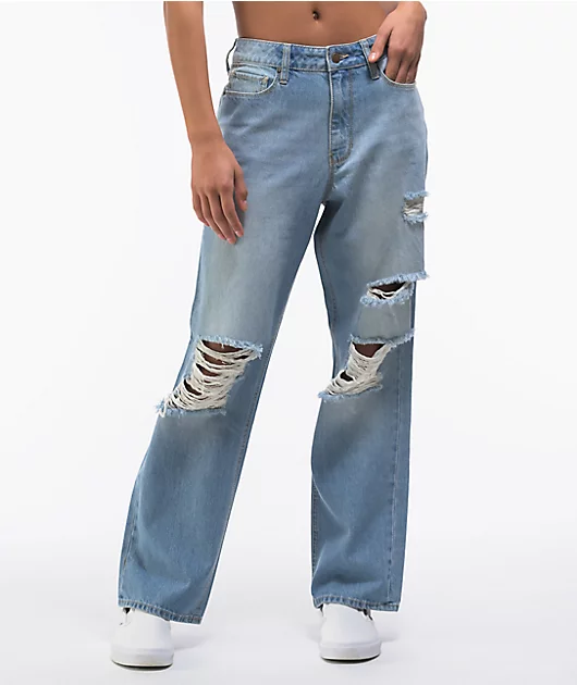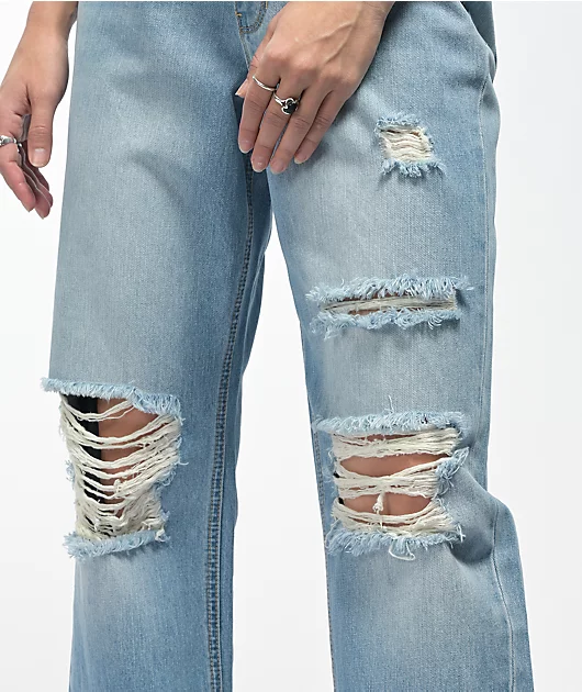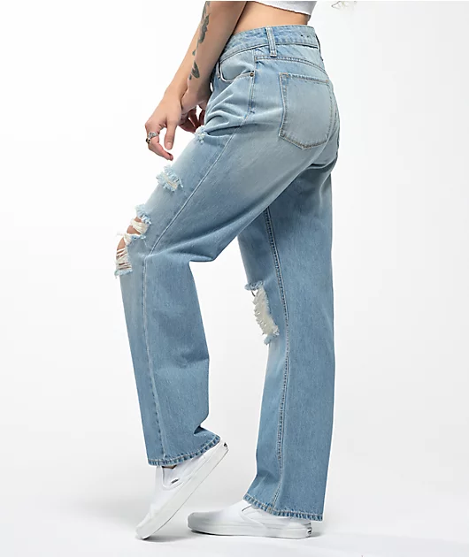 Give off some serious daddy vibes with the Frankie light wash dad jeans from Empyre! These light blue pants come with punk-inspired pre-distressed sections at the knees and left thigh, with a straight-legged silhouette that’s sure to turn heads in any out