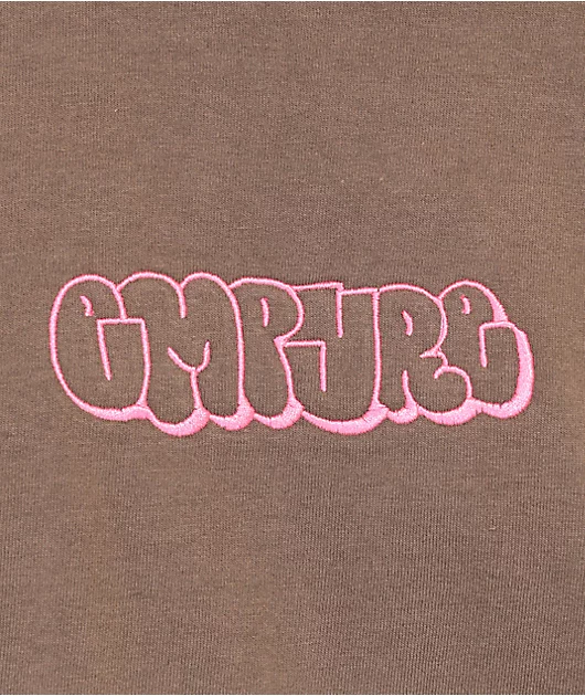 The Graffiti t-shirt from Empyre features a relaxed fit and is made from 100% cotton, ensuring comfort for everyday wear. This graphic tee comes in a brown color and showcases the Empyre logo script embroidered in hot pink across the chest, creating a min