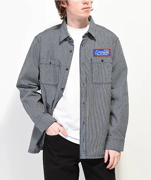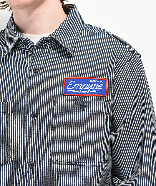 From Empyre comes the Guy Work long sleeve shirt, offering easy layering with out pieces with a full-button closure and a retro-style with blue and birch white horizontal stripes throughout. Left of chest is a brand patch with red accents to catch the eye