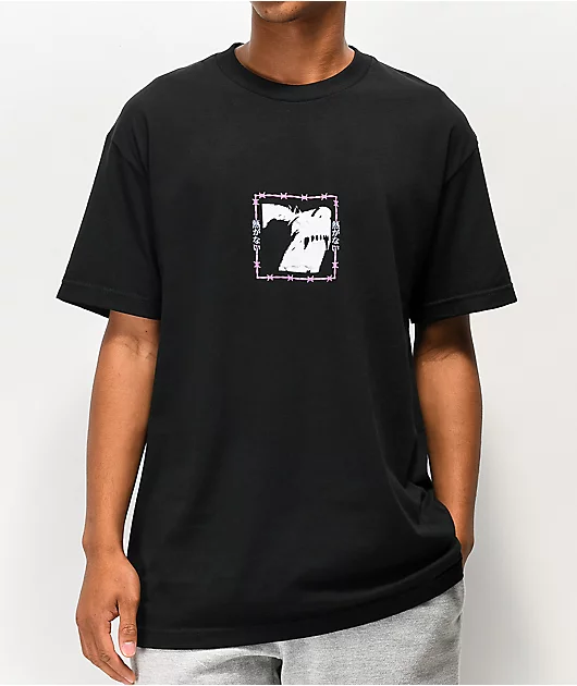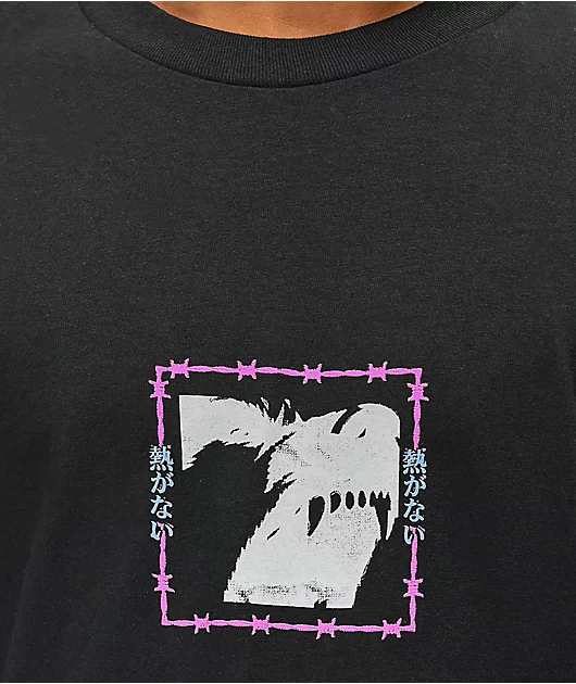For a wild new addition to your graphic tee collection, grab the Heat Signature black t-shirt from Empyre. This relaxed fit t-shirt comes in black and features screen-printed imagery of a ferocious animal surrounded by pink barb wire and Kanji text. The b