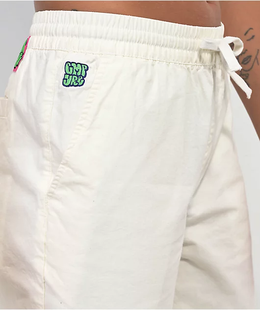 In a tofu colorway comes the Jessie E-Waist poplin skate pants from Empyre, showing off recognizable branding with an embroidered brand name at the right pocket and a brand tag on above the right seat pocket. These skate pants offer a customizable fit wit