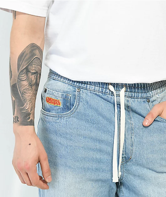 The Johnny skate jeans from Empyre are now featured in a light washed denim construction. These elastic waist skate jeans offer a comfortable fit, while the adjustable drawstring waist allows you to customize your fit. Offering a baggy skate pant fit, th