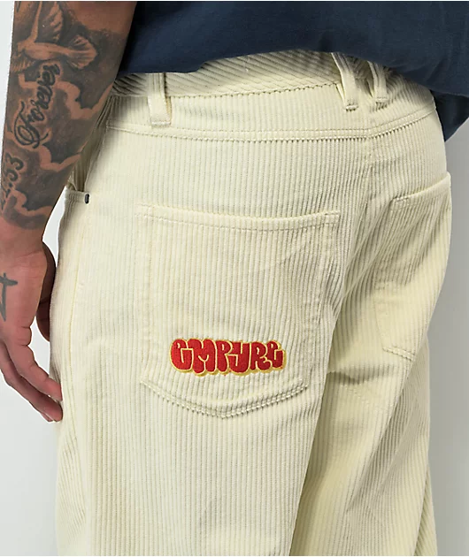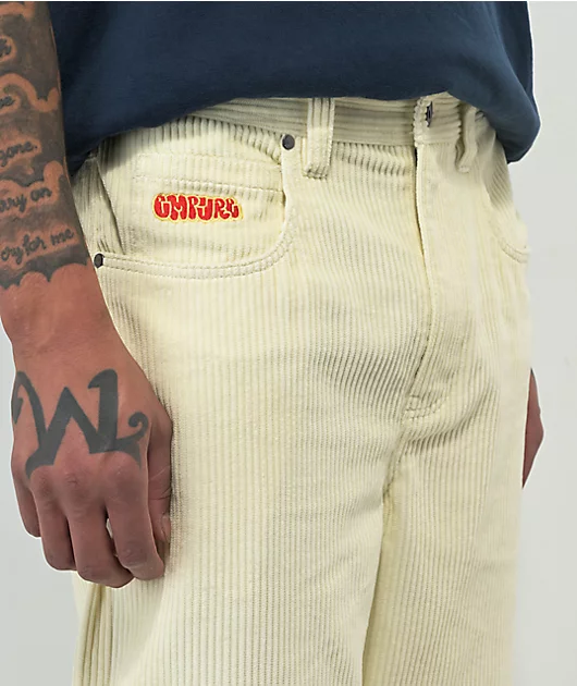 In a classic cream colorway comes the Jumbo skate pants from Empyre, offering a loose and baggy fit for a laid-back look. These unique pants feature a corduroy construction, coming complete with noticeable branding on the right hip, back waistline and rig