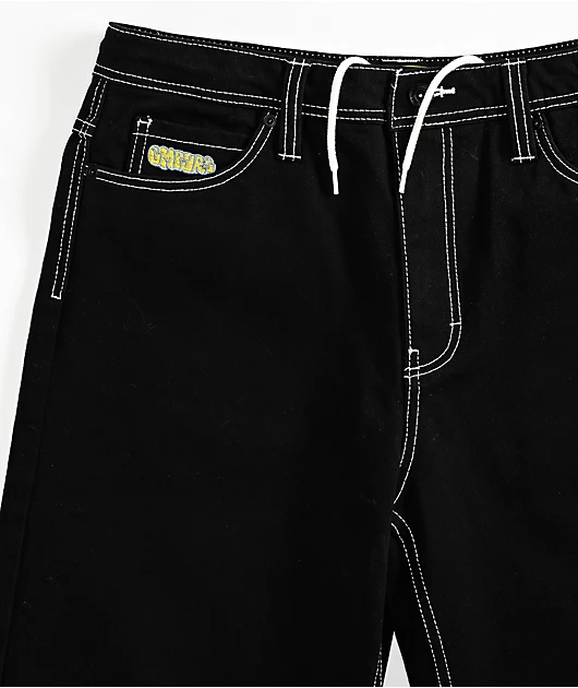 Offered in kids sizing, the Empyre Embroidered skate shorts arrive in a black denim construction – with a stylish ultra loose fit. The black jean shorts are designed with white contrast stitching for a distinctly 90s feel – but the internal drawstrin